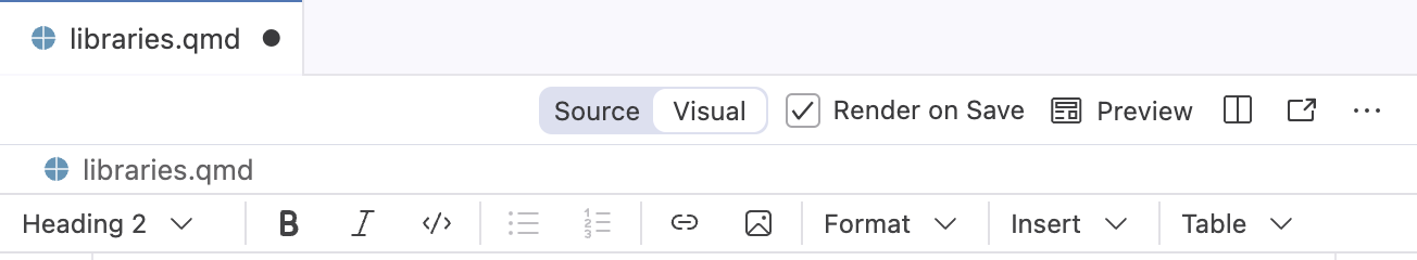 There are a handful of Pandoc markdown extensions not currently supported by visual editing. These are infrequently used extensions, so in all likelihood they won’t affect documents you edit, but are still worth noting.